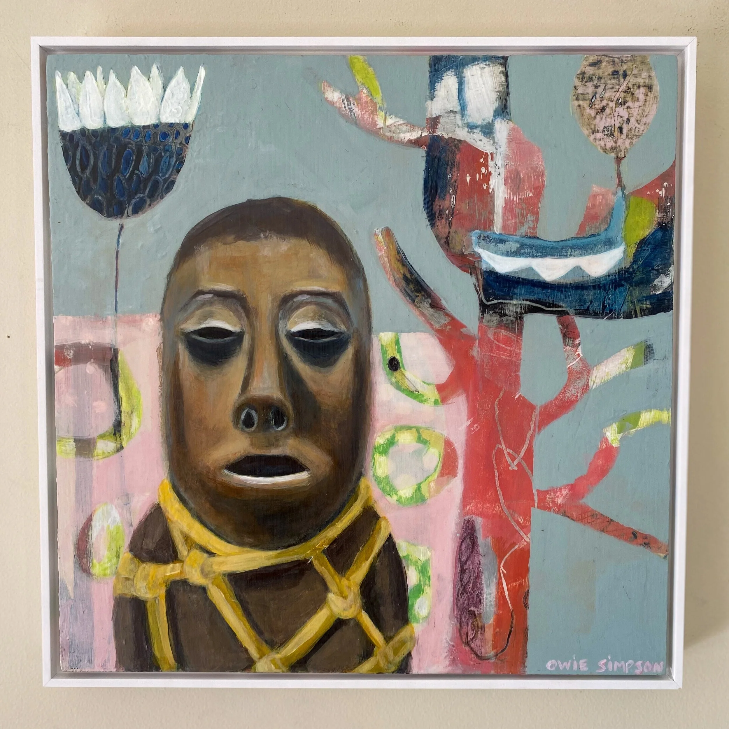 I start a painting with drawing and laying down blocks of colour. Adding (and subtracting) different patterns as each layer develops. Some paintings may have up to 15 layers. I painted with acrylic on board and finished them by coating them with a protective layer of wax.